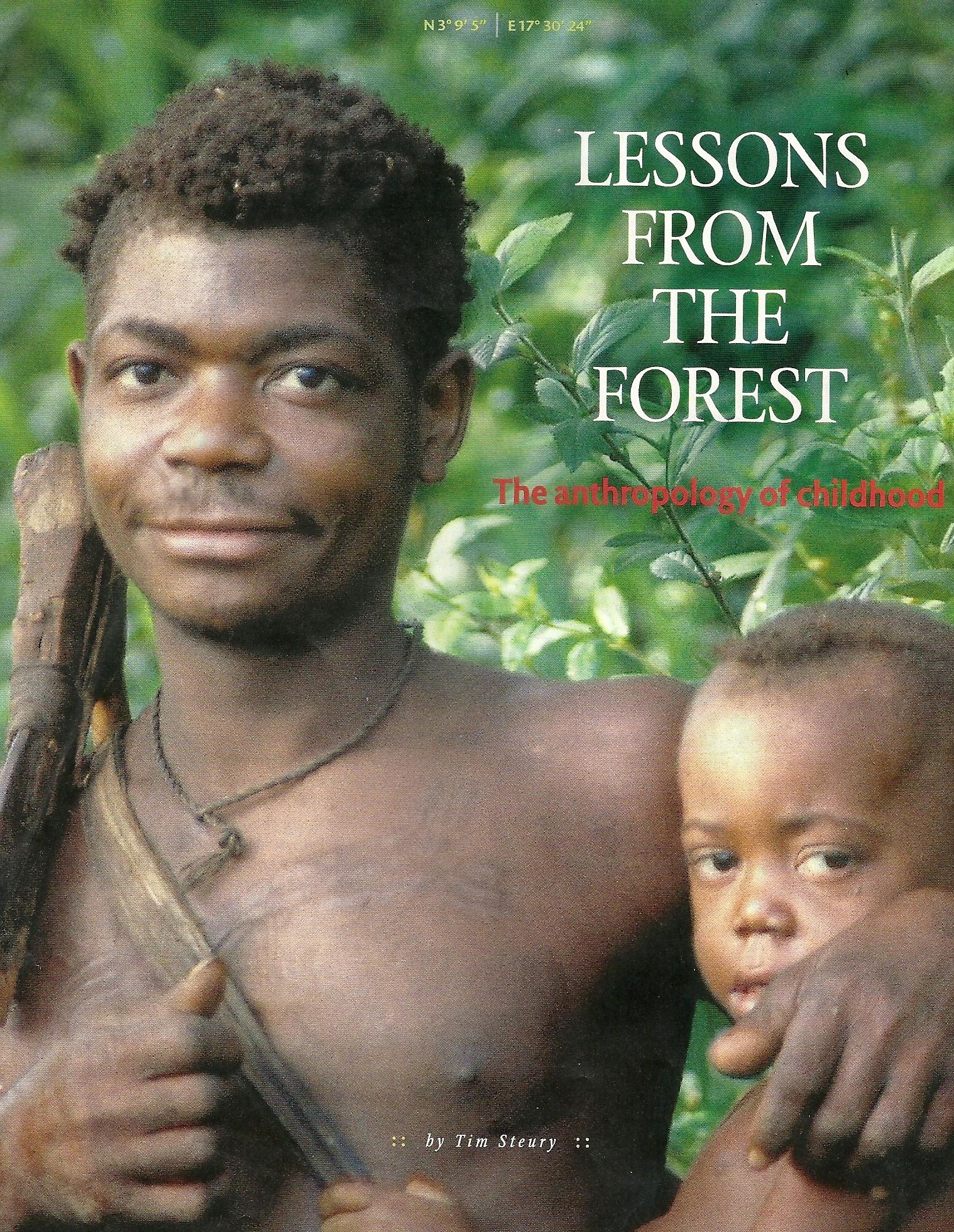The spring issue of the Washington State Magazine features: “Lessons From The Forest – The anthropology of childhood”, an article discussing anthropological research of Barry Hewlett, professor at Washington State University – Vancouver. The article’s focus portrays paternal infant and child care among one of the last hunter-gatherer populations, the Aka Pygmies of the Central African Republic and Congo. The Aka number approximately 20, 000, resist efforts at settlement, and live in camps of 20 to 35 individuals that comprise a few families. Hewlett’s recent book, Hunter -Gatherer Childhoods, lists the lessons that can be learned from ancestors who represent 95 percent of human history, offering “a glimpse of the eons of human development and socialization”.